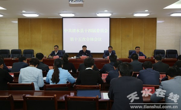 全會(huì)號(hào)召,全縣各級(jí)黨組織和全體共產(chǎn)黨員要高舉中國(guó)特色社會(huì)主義偉大旗幟,全面貫徹黨的十八大和十八屆三中、四中、五中全會(huì)精神,堅(jiān)持創(chuàng)新、協(xié)調(diào)、綠色、開(kāi)放、共享的發(fā)展理念,團(tuán)結(jié)全縣各族人民,同心同德,艱苦奮斗,開(kāi)拓進(jìn)取,努力做好各方面的工作,以?xún)?yōu)異的成績(jī)迎接中共清水縣第十四屆委員會(huì)第十五次代表大會(huì)的勝利召開(kāi),為順利完成“十三五”規(guī)劃、打贏脫貧攻堅(jiān)戰(zhàn),全面建成小康社會(huì)目標(biāo)而奮斗。