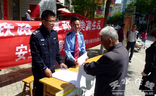 在開展整治活動(dòng)的同時(shí),清水縣還在縣城中山路舉行鐵路愛路護(hù)路專題宣傳活動(dòng),對(duì)中小學(xué)生、殘疾人、養(yǎng)殖戶等特殊群體加大宣傳力度,增強(qiáng)他們的安全防護(hù)意識(shí);鄉(xiāng)鎮(zhèn)護(hù)路辦在道口、隧道、橋梁等處張貼警示標(biāo)語(yǔ)標(biāo)志,刷寫固定宣傳標(biāo)語(yǔ),引導(dǎo)村、組把愛路護(hù)路納入村民自治公約,利用召開黨員會(huì)、群眾大會(huì)等契機(jī)開展愛路護(hù)路宣傳,做到逢會(huì)必講,安全常識(shí)入腦入心;在鐵路沿線中小學(xué)中開展了“鐵路安全在我心”主題宣傳教育活動(dòng),并結(jié)合實(shí)際,制訂出了詳細(xì)的工作方案。