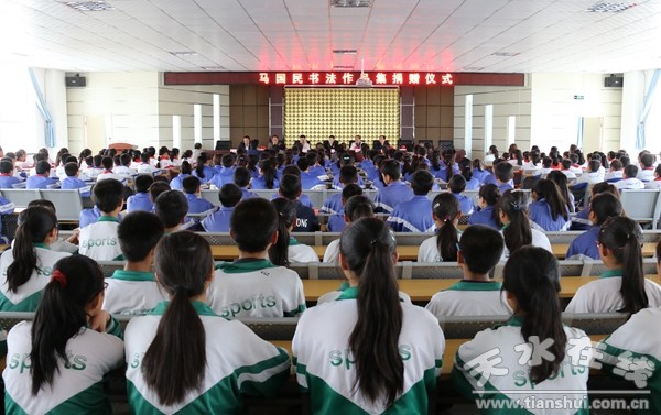 5月27日下午,在清水縣第三中學(xué)會(huì)議室里,來自縣三中、五中、原泉、軒轅、西關(guān)、東關(guān)六所學(xué)校300余名師生代表,縣文聯(lián)、書協(xié)、作協(xié)及各協(xié)會(huì)主席及部分縣書協(xié)會(huì)員歡聚一堂,共同見證清水縣書協(xié)主席馬國(guó)民先生書法作品集捐贈(zèng)活動(dòng)。清水縣委常委、宣傳部長(zhǎng)張秀麗出席捐贈(zèng)儀式并講話。