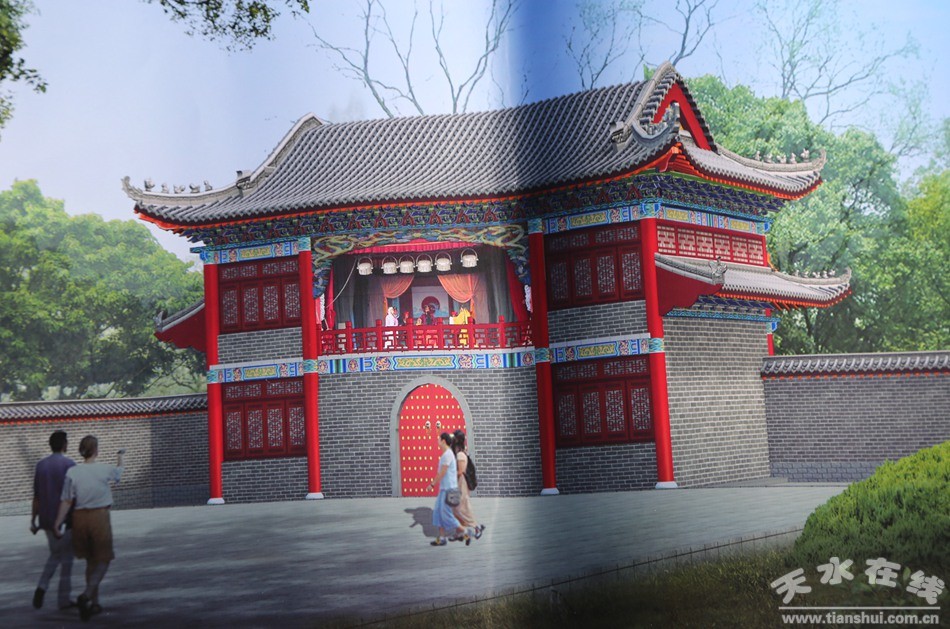 近年來,清水縣為了進(jìn)一步打造“軒轅故里”歷史文化名城,在縣城實施了一系列軒轅文化工程,在三皇谷原有建筑文化的基礎(chǔ)上,建設(shè)了軒轅殿,今年又啟動建設(shè)一座大戲樓項目。戲樓建筑風(fēng)格與已建成的軒轅殿風(fēng)格一致,均為仿明清古建筑風(fēng)格。戲樓結(jié)構(gòu)為混凝土框架結(jié)構(gòu),總建筑面255平方米,建筑通高11.57m,進(jìn)深8.5m,面闊三間,歇山卷棚頂。從建筑南面觀看為雙層單檐戲樓,北面觀看為雙層檐山門形式,建筑整體莊重大方,氣勢雄壯。目前完成主體工程,計劃在年內(nèi)竣工投入使用。