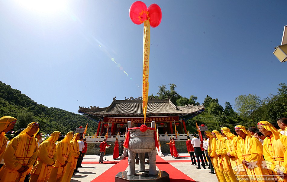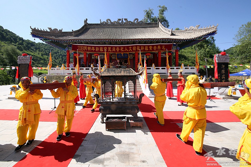 7月16日上午,清水縣民間人士在山門鎮(zhèn)軒轅谷舉行了隆重的祭祀人文始祖軒轅黃帝典禮。2016(丙申)年軒轅宮民間祭祀軒轅黃帝活動(dòng)由山門鎮(zhèn)白河村主辦,甘肅省軒轅文化研究會、清水縣民族宗教局和山門鎮(zhèn)人民政府協(xié)辦。祭祀的主題是:緬懷人文始祖、振興中華民族。