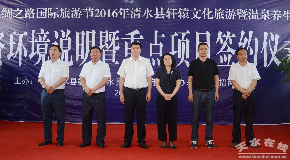 7月21日下午,清水縣舉行軒轅文化旅游暨溫泉養(yǎng)生活動投資環(huán)境說明暨重點項目簽約儀式,詳細介紹清水縣情和投資環(huán)境,現(xiàn)場簽約招商項目共33項,總投資39.5億元。