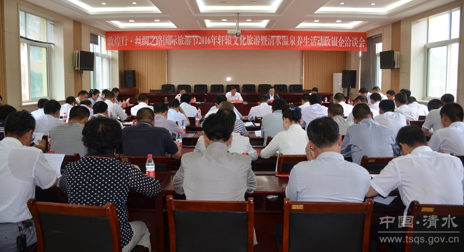 7月22日,清水縣召開(kāi)敦煌行·絲綢之路國(guó)際旅游節(jié)2016年軒轅文化旅游暨溫泉養(yǎng)生活動(dòng)政銀企洽談會(huì)。縣委副書(shū)記、縣長(zhǎng)馬越垠,縣委常委、副縣長(zhǎng)蔡俊杰,副縣長(zhǎng)楊泉出席會(huì)議。會(huì)議由縣委常委、組織部長(zhǎng)周濟(jì)主持。市縣金融機(jī)構(gòu),縣內(nèi)企業(yè)代表及縣直相關(guān)部門(mén)負(fù)責(zé)人參加了會(huì)議。