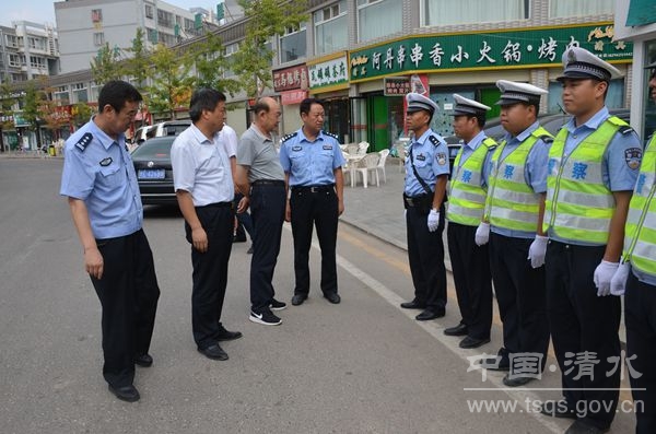 8月23日,清水縣委常委、常務副縣長牛永禎,縣委常委、政法委書記王馬代深入交警隊執(zhí)法服務站,看望慰問嚴查嚴懲嚴重道路交通違法行為專項行動交通民警。