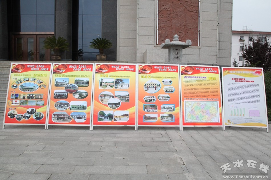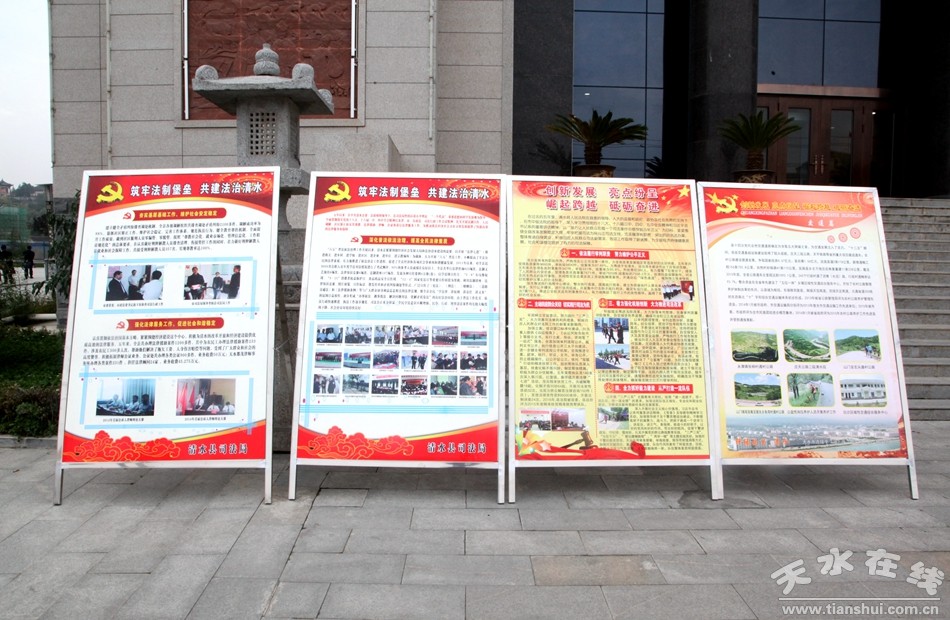 黨代會期間,清水縣以展板的形式向代表全面展示縣十四次黨代會以來全縣經濟社會發(fā)展成果。展板圍繞實現教育質量、交通道路、特色產業(yè)、城鄉(xiāng)建設、工業(yè)經濟五大突破,突出項目帶動、生態(tài)建設、旅游開發(fā)、社會管理、民生改善五大重點,以強化黨的建設、勞務經濟、促進農增收、城鄉(xiāng)建設等主要內容,繪制了清水“十三好”新篇章。