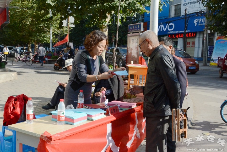10月17日,清水縣隆重舉行第三個“全國扶貧日”系列活動?h脫貧攻堅領(lǐng)導(dǎo)小組辦公室組織18鄉(xiāng)鎮(zhèn)、扶貧、財政、發(fā)改等單位在中山路十字路口、軒轅廣場等人口密集地段,通過懸掛橫幅、發(fā)放資料、宣講政策等方式,引導(dǎo)社會各界關(guān)注扶貧,關(guān)愛貧困人口、關(guān)心扶貧工作。
