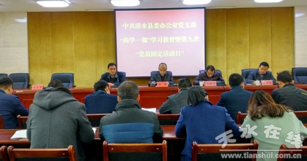 11月4日下午,清水縣委辦公室黨支部開展“黨員固定活動日”活動,認真學習十八屆六中全會上審議通過的《關(guān)于新形勢下黨內(nèi)政治生活的若干準則》和《中國共產(chǎn)黨黨內(nèi)監(jiān)督條例(試行)》,并以“如何立足本職崗位,發(fā)揮先鋒模范作用”為主題做專題研討,全體黨員圍繞貫徹十八屆六中全會精神做了交流發(fā)言?h委副書記張濤出席會議,縣委辦支部全體黨員參加會議。