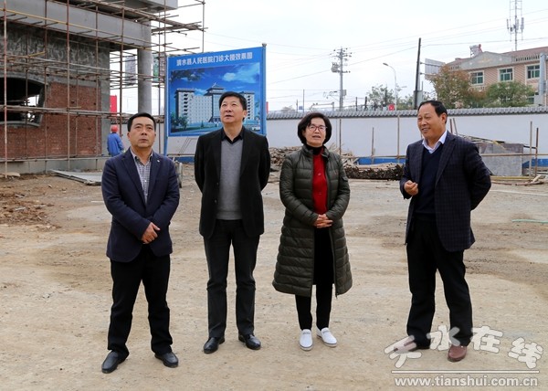 11月4日,由甘肅省衛(wèi)計(jì)委副巡視員安平帶領(lǐng)專家組深入清水縣,就該縣全國衛(wèi)生縣城創(chuàng)建工作開展情況進(jìn)行檢查。清水縣領(lǐng)導(dǎo)王新強(qiáng)、牛永禎、張煒 、盧芳、畢德祥、周建新、王懷珍、李寶玲、曹鳳娥、李應(yīng)祥陪同。