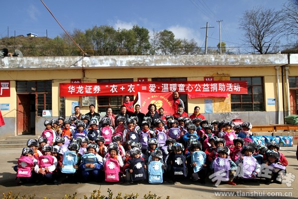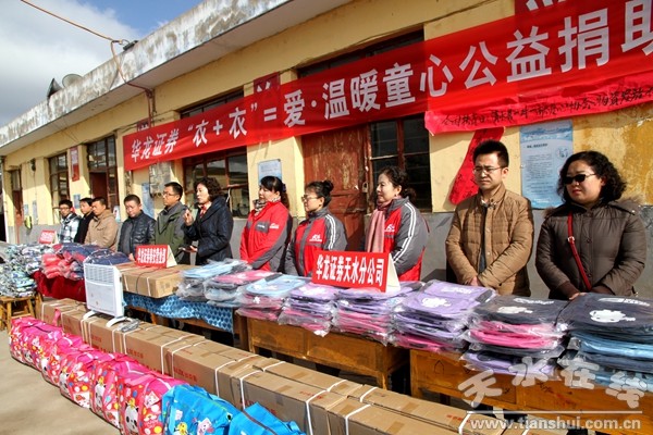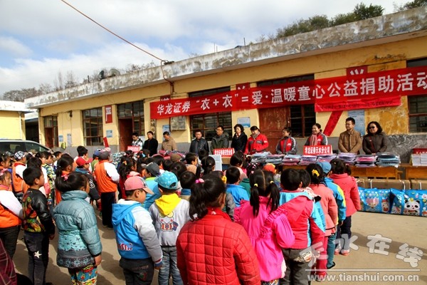 11月11日上午,華龍證券“衣+衣”=愛·溫暖童心公益捐助活動(dòng)在清水縣新城鄉(xiāng)黑佐小學(xué)舉行。清水縣“一對一獻(xiàn)愛心”貧困兒童資助協(xié)會(huì)攜手華龍證券,為黑佐小學(xué)送去價(jià)值19650元愛心物資,并對13名特困學(xué)生進(jìn)行了特別救助,在寒冷的冬天給他們送上一份溫暖。