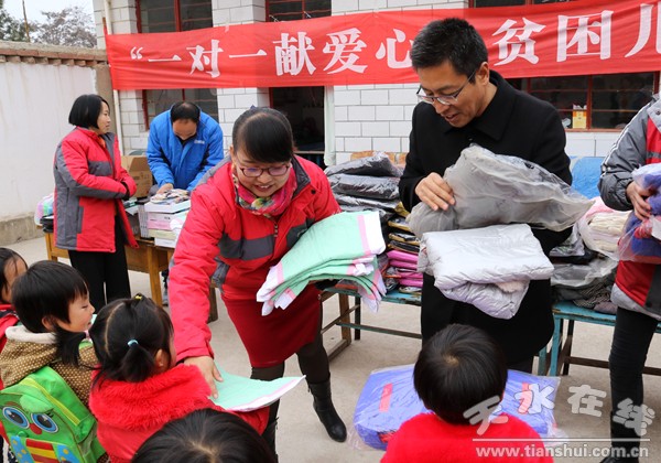 近期天氣逐漸轉(zhuǎn)冷,得知學(xué)生們?nèi)鄙俦E挛锏默F(xiàn)實(shí)困難后,在李溝村開展雙聯(lián)幫扶活動的清水縣發(fā)改局干部聯(lián)合縣“一對一獻(xiàn)愛心”貧困兒童資助協(xié)會,為該村的孤寡老人送去了棉衣,為村幼兒園的小朋友送去了衣服和學(xué)習(xí)用品,為學(xué)校捐贈了教學(xué)用具,捐物價值合計16200元。