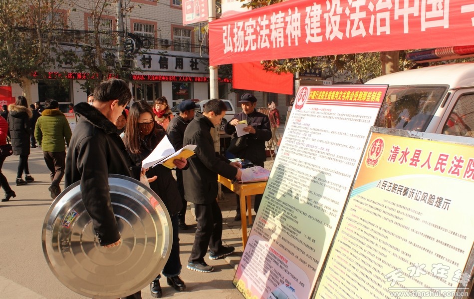 為進一步增強全縣市民的法制意識,形成全社會自覺學(xué)法守法的良好氛圍。12月4日,清水縣在永清路、中山路及鄉(xiāng)鎮(zhèn)積極開展國家憲法日法制宣傳活動。