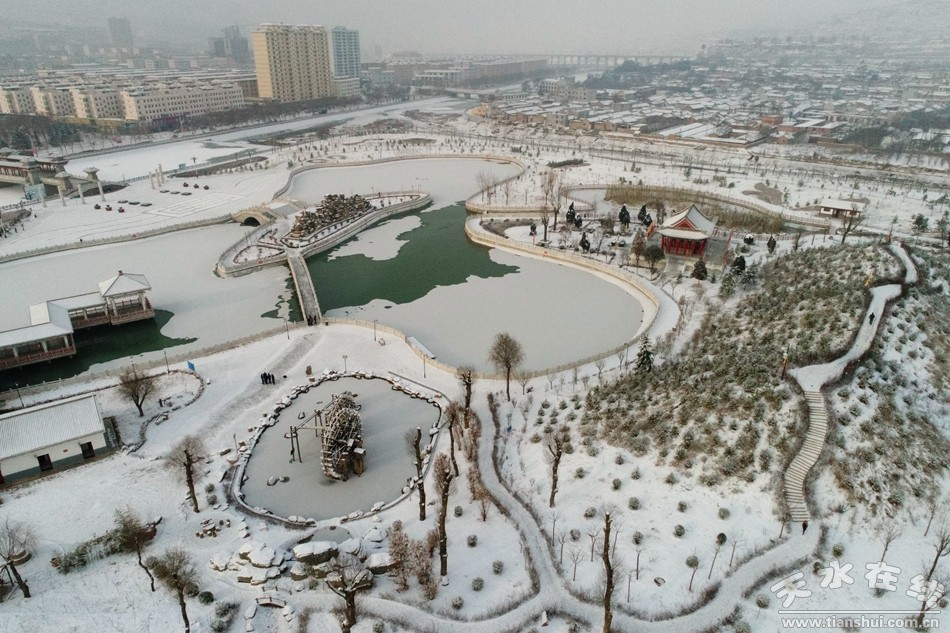 1月10日,清水縣迎來2017年第二場雪。雪從上午開始下,一直持續(xù)到晚上,白皚皚的雪將清水縣城裝點的分外美麗。
