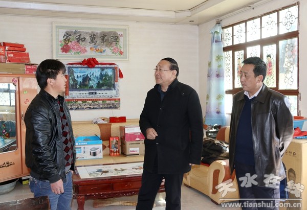 (縣人大常委會(huì)主任周偉東與貧困戶詳細(xì)交談)