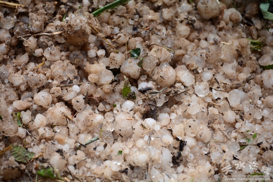 5月18日17時(shí)53分,清水縣出現(xiàn)短時(shí)大風(fēng)陣雨冰雹天氣,冰雹直徑最大2厘米,持續(xù)最長(zhǎng)時(shí)間越30分鐘左右,蘋(píng)果、油菜籽、玉米、大櫻桃、花椒、洋芋、胡麻、小麥、核桃等農(nóng)作物受災(zāi)。坐果期的蘋(píng)果、核桃、花椒、成熟期的大櫻桃果面被打傷、果子被打落在地,油菜籽嚴(yán)重倒伏平鋪,玉米葉子打成細(xì)絲。