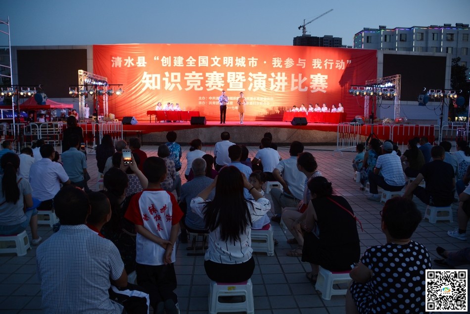 7月25日晚,清水縣在軒轅廣場(chǎng)舉行“創(chuàng)建全國(guó)文明城市·我參與我行動(dòng)”演講比賽,在當(dāng)天的比賽中,來(lái)自十八鄉(xiāng)鎮(zhèn)的參賽選手們用真摯的情感、生動(dòng)的語(yǔ)言、感人的故事,從不同角度表達(dá)了對(duì)創(chuàng)建全國(guó)文明城市的理解和感悟,闡釋了參與創(chuàng)建文明城市和建設(shè)美好家園的決心和信心,以飽滿的熱情謳歌了在創(chuàng)建全國(guó)文明城市過(guò)程中身邊涌現(xiàn)出來(lái)的先進(jìn)人物和動(dòng)人事跡。