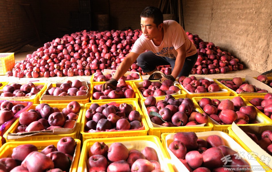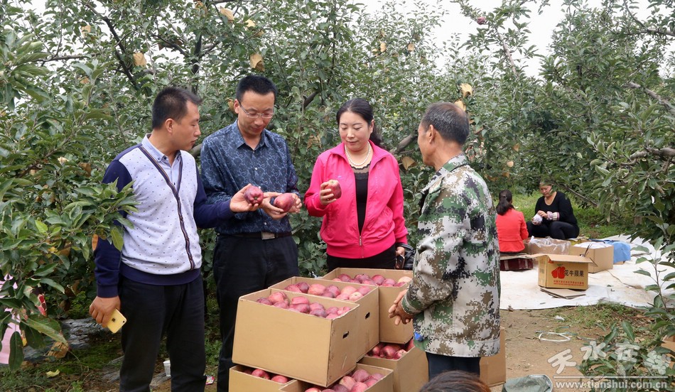 為了使自家的寶貝蘋果賣上好價錢,今年村民們嘗試通過微信在網(wǎng)上銷售蘋果。村民宋斌主動承擔(dān)起了村上果品網(wǎng)上外賣的紅娘,由他負責(zé)將村民們的微信二維碼發(fā)布在天水在線網(wǎng)站平臺,客戶掃碼添加銷售核桃的村民,在微信上商談購買,達成一致后發(fā)微信紅包付款,村民發(fā)貨完成交易。