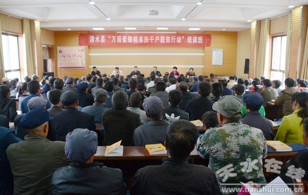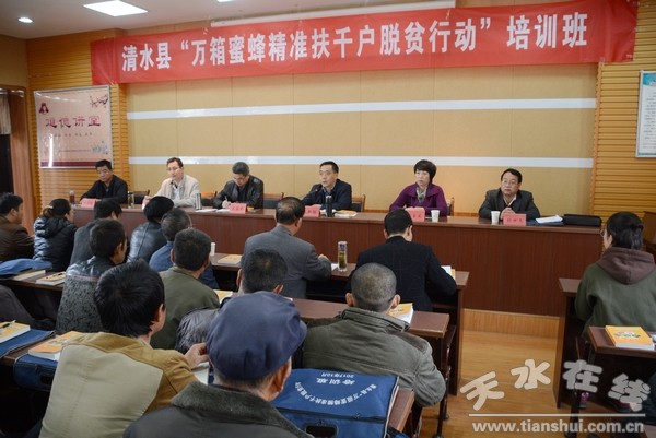 10月20日,清水縣“萬箱蜜蜂精準(zhǔn)扶千戶脫貧行動”培訓(xùn)班開班。清水縣委副書記王新強,天水農(nóng)業(yè)學(xué)校校長吳毅中,天水農(nóng)業(yè)學(xué)校黨委書記馬玉鳳,甘肅省蜂蜜技術(shù)推廣站站長張世文出席會議;18鄉(xiāng)鎮(zhèn)蜂示范戶及畜牧局干部200多人參加了培訓(xùn)會。