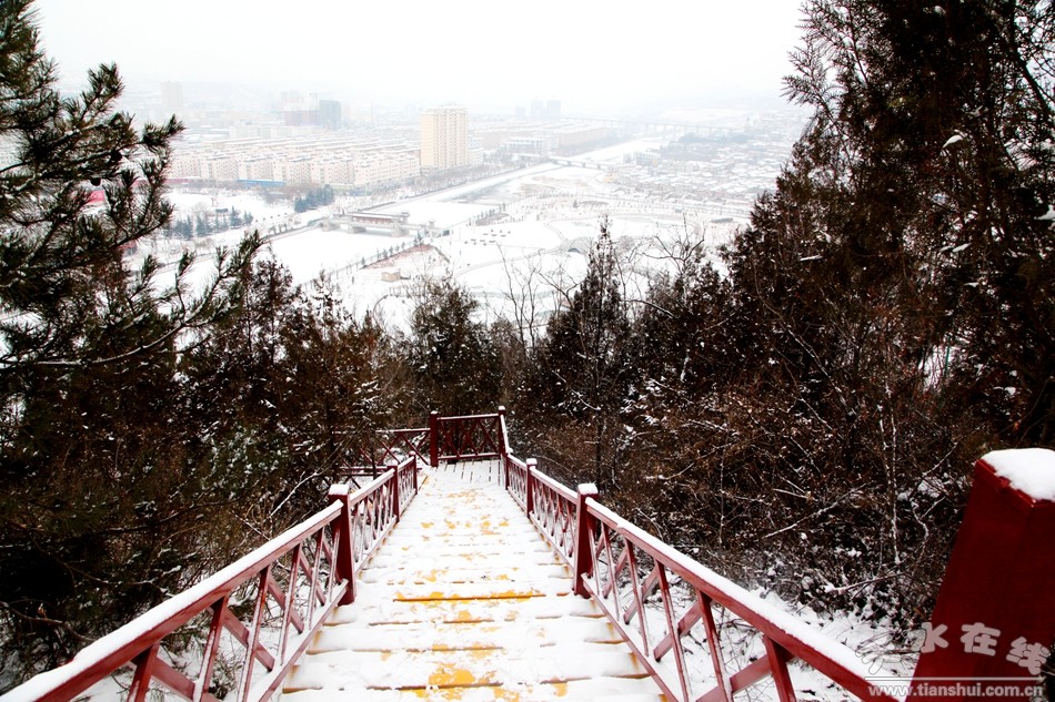 近日,軒轅故里清水迎來了2018年的第一場降雪,清水縣北山生態(tài)園里銀裝素裹,宛若童話世界,正是登山賞雪景好去處。市民朋友們紛紛走出家門,登北山步道 賞美麗雪景。