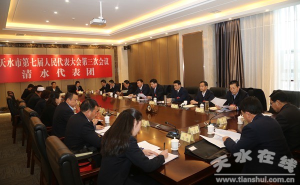 1月4日下午,出席天水市七屆人大三次會(huì)議的清水縣代表團(tuán)召開分團(tuán)會(huì)議。