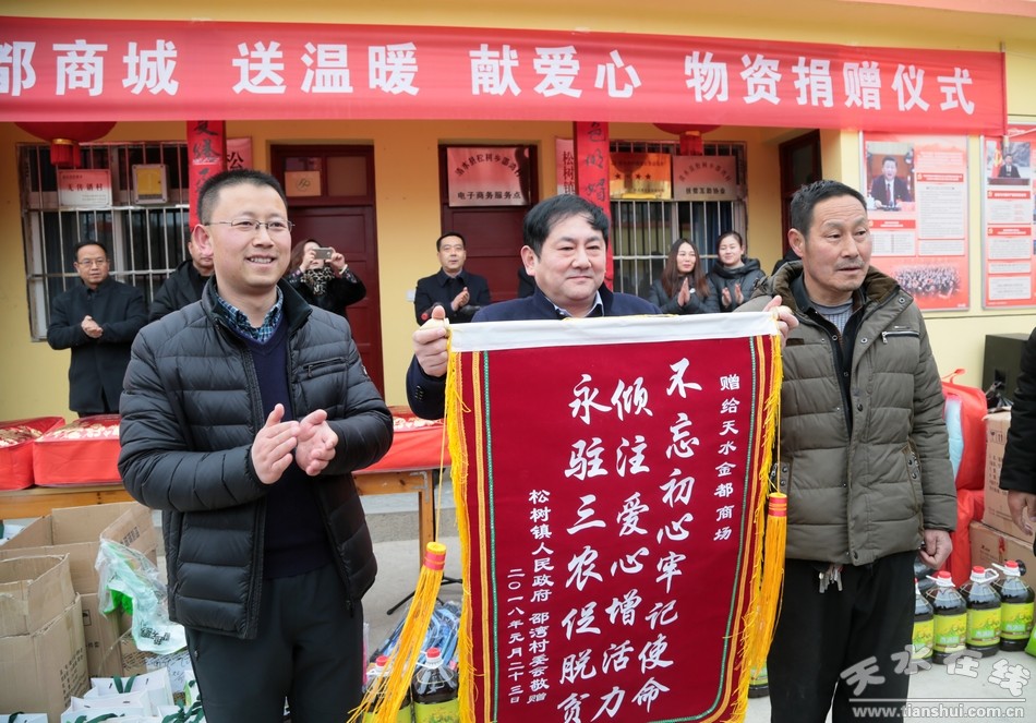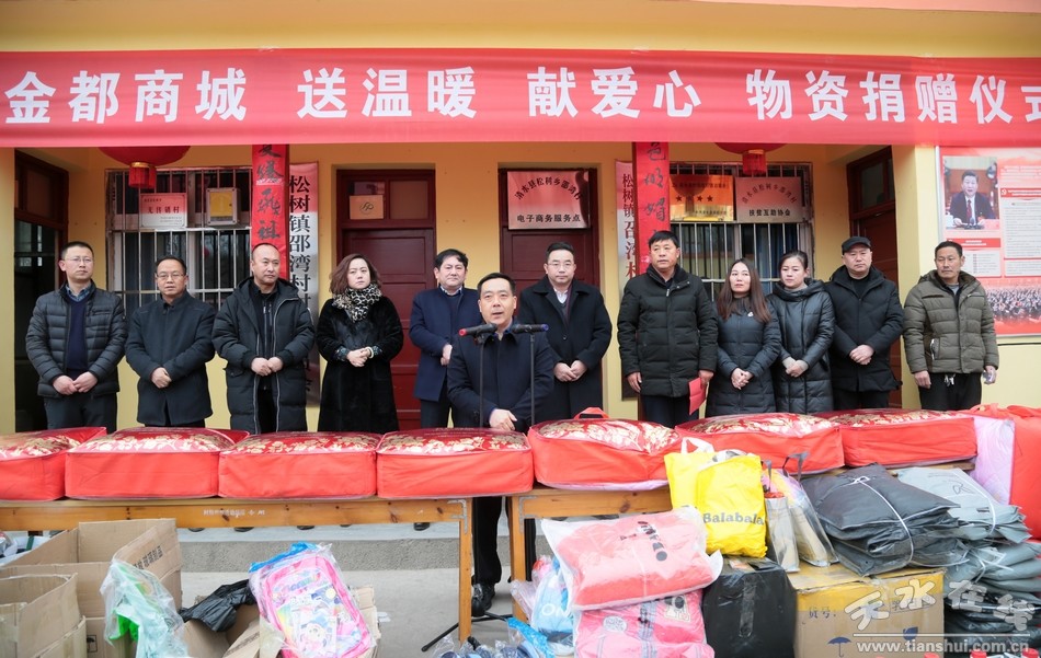 1月23日,天水金都商城愛(ài)心人士深入清水縣松樹鎮(zhèn)邵灣村開展送溫暖、獻(xiàn)愛(ài)心捐贈(zèng)活動(dòng),為當(dāng)?shù)乩щy群眾和兒童送去價(jià)值4萬(wàn)多元的大米、食用油、棉衣等生活用品及學(xué)習(xí)用具,并送去新春的祝福,把黨和政府以及社會(huì)各界的溫暖傳遞到每家每戶。