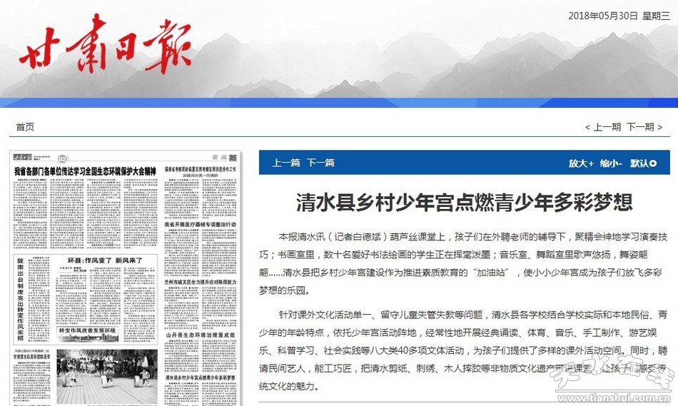 針對(duì)課外文化活動(dòng)單一、留守兒童失管失教等問題,清水縣各學(xué)校結(jié)合學(xué)校實(shí)際和本地民俗、青少年的年齡特點(diǎn),依托少年宮活動(dòng)陣地,經(jīng)常性地開展經(jīng)典誦讀、體育、音樂、手工制作、游藝娛樂、科普學(xué)習(xí)、社會(huì)實(shí)踐等八大類40多項(xiàng)文體活動(dòng),為孩子們提供了多樣的課外活動(dòng)空間。同時(shí),聘請(qǐng)民間藝人,能工巧匠,把清水剪紙、刺繡、木人摔跤等非物質(zhì)文化遺產(chǎn)帶進(jìn)課堂,讓孩子們感受傳統(tǒng)文化的魅力。