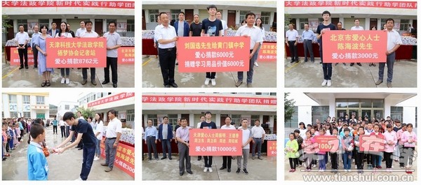 7月15日至16日,天津科技大學法政學院新時代實踐行助學團隊捐贈儀式在清水縣舉行。天津科技大學法政學院“情系清水,愛心助學”團隊、江蘇省鹽城市響水縣愛心人士劉國選先生、天津科技大學法政學院棲夢協(xié)會主席、天津科技大學法政學院愛心助學支教師生,以及縣直有關(guān)單位負責人參加了捐贈儀式。捐贈儀式由清水縣委常委、副縣長程伯義主持。