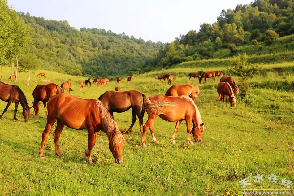 張呂牧場位于清水縣秦亭鎮(zhèn)東北部15公里處,地處關(guān)山東麓,草地面積400多畝,降水豐富,水草茂盛,年平均氣溫5-8 ℃,屬高寒陰濕山區(qū)。獨特的地理環(huán)境,悠久的養(yǎng)馬歷史,都讓世代居住于此的人們對養(yǎng)馬有著獨特的感情,夏日的牧場,駿馬在碧綠的草地上縱橫馳騁,嘶鳴歡叫......這都讓懷抱青山綠水,吮吸天然氧吧,坐看藍(lán)天云卷云舒的人們,不禁聯(lián)想起這方土地歷史的神秘和悠久。