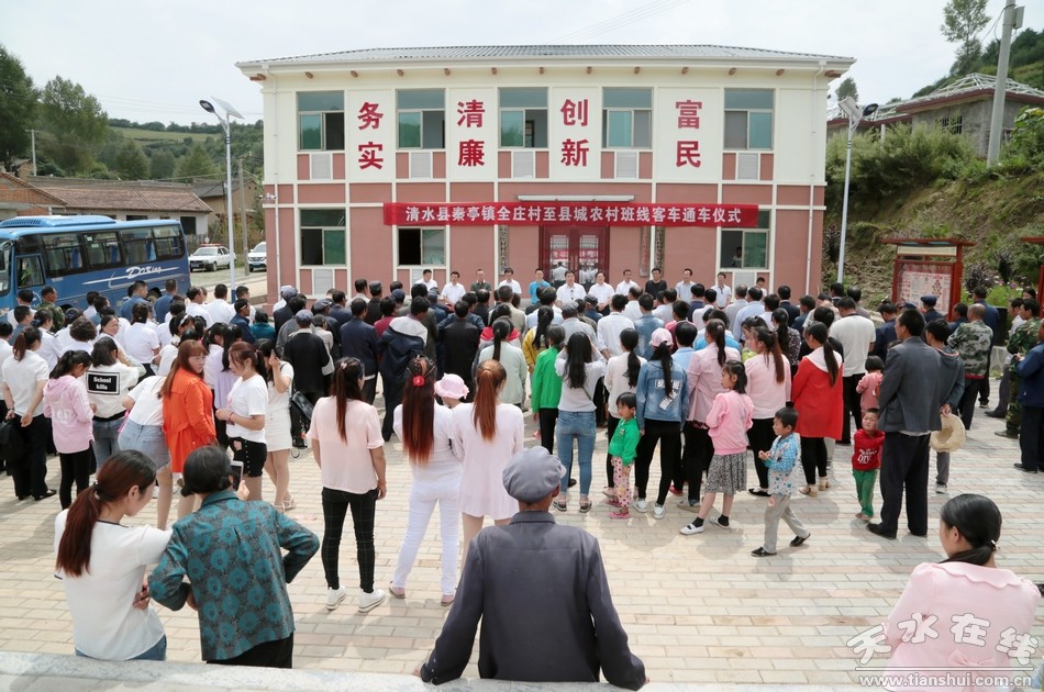 8月16日,清水縣秦亭鎮(zhèn)全莊村至縣城農村班線客車通車。市人大常委會副主任、清水縣委書記劉天波,市運管局局長王建民,天水卷煙廠黨委副書記王勇,清水縣委副書記李致明,縣委常委、宣傳部長宋賢雄,縣政協(xié)副主席李應祥出席通車儀式;天嘉集團、市道路運輸協(xié)會、市運管局,縣直有關單位負責人,秦亭鎮(zhèn)各行政村村干部及全莊村全體村民參加了通車儀式。