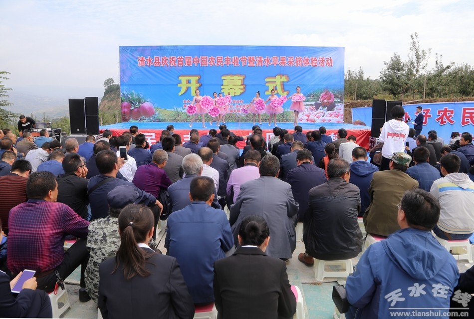 上午九點半,市人大常委會副主任、清水縣委書記劉天波宣布“清水縣慶祝首屆中國農(nóng)民豐收節(jié)暨清水蘋果采摘體驗活動開幕”。