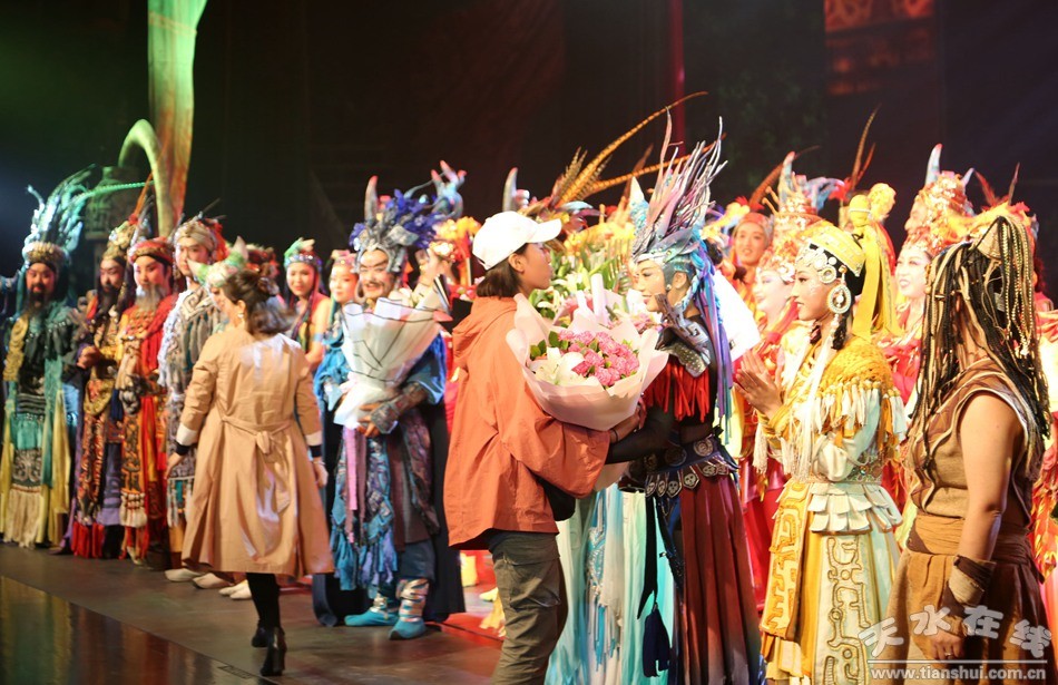 演出結(jié)束后,張掖市人大常委會(huì)主任張健等領(lǐng)導(dǎo)上臺(tái)慰問了全體演職人員,對(duì)《軒轅大帝》在張掖的演出成功表示祝賀,對(duì)演員和劇組各位工作人員的辛勤努力表示感謝,勉勵(lì)全體演職人員再接再勱,力爭(zhēng)使這一精品劇目走向更高的舞臺(tái)。