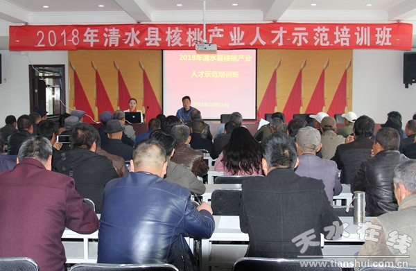 10月15日,清水縣核桃產(chǎn)業(yè)人才示范培訓(xùn)班在縣核桃產(chǎn)業(yè)人才培訓(xùn)基地順利開班?h委組織部、縣科技局、縣果業(yè)局有關(guān)負(fù)責(zé)同志,全縣核桃種植大戶共計(jì)100多人參加開班儀式。