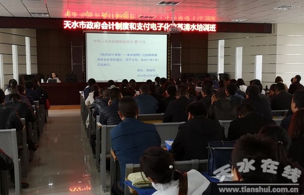 為了推進(jìn)清水縣國(guó)庫(kù)集中支付制度深化改革,進(jìn)一步規(guī)范會(huì)計(jì)核算管理和國(guó)庫(kù)集中支付電子化。10月18日至20日,清水縣邀請(qǐng)西安工程大學(xué)管理學(xué)院會(huì)計(jì)系副教授宋玉和蘭州光景信息服務(wù)有限公司軟件高級(jí)工程師胡軍權(quán)在縣第三中學(xué)舉辦了為期三天的天水市政府會(huì)計(jì)制度和電子化支付改革清水培訓(xùn)班。各預(yù)算單位會(huì)計(jì)、財(cái)政所和財(cái)政局全體人員共計(jì)300多人參加培訓(xùn)。