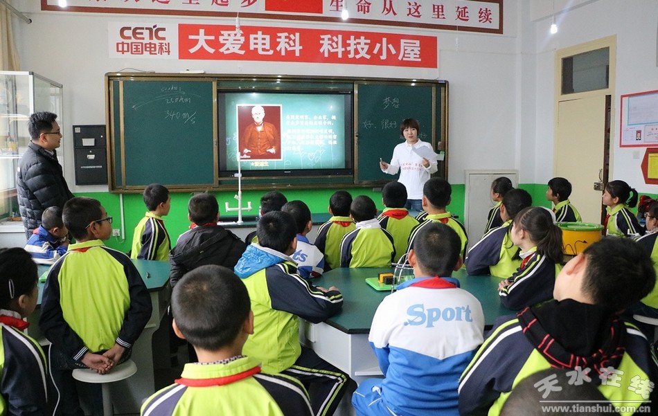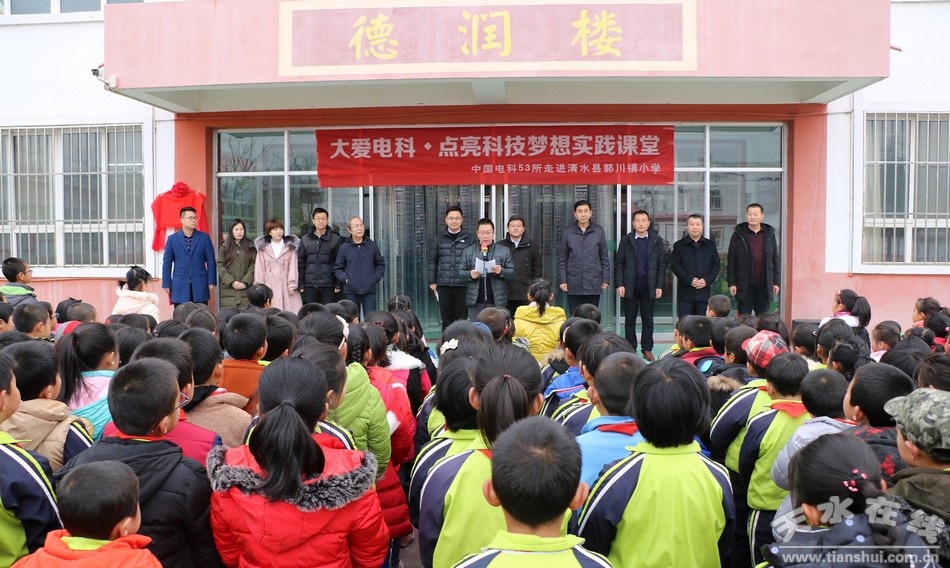 12月24日,“大愛(ài)電科——科技小屋”揭牌儀式在清水縣郭川鎮(zhèn)中心小學(xué)舉行。天水市政府副市長(zhǎng)張英遠(yuǎn)、中國(guó)電科53所團(tuán)委副書(shū)記王子揚(yáng)、清水縣人大常委會(huì)副主任劉志偉出席揭牌儀式;郭川鎮(zhèn)、教體局負(fù)責(zé)人,中心小學(xué)全體師生共計(jì)300余人參加揭牌儀式。