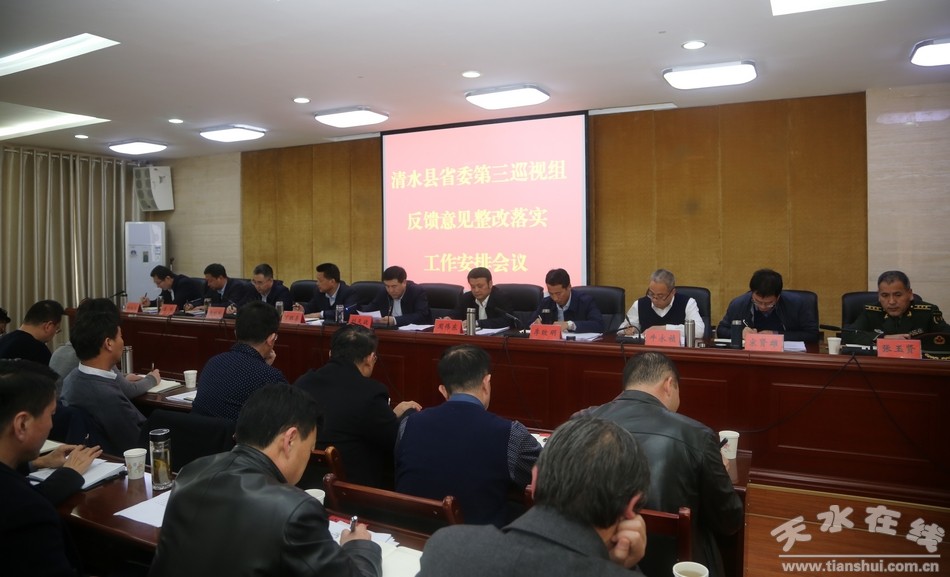 3月16日下午,市人大常委會(huì)副主任、清水縣委書記劉天波主持召開清水縣省委第三巡視組反饋意見整改落實(shí)工作安排會(huì),對(duì)省委第三巡視組反饋意見的整改落實(shí)工作進(jìn)行安排部署,進(jìn)一步統(tǒng)一思想、明確任務(wù),靠實(shí)責(zé)任,扎實(shí)做好巡視“后半篇文章”,確保按期全面完成巡視整改任務(wù)。