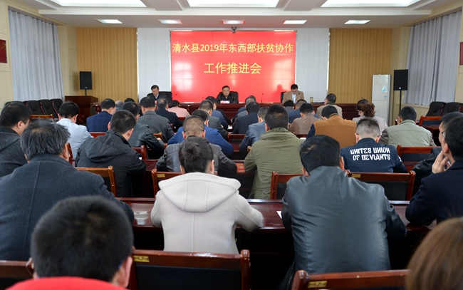 會(huì)議聽取了各相關(guān)部門工作進(jìn)展情況的匯報(bào),縣扶貧辦負(fù)責(zé)人宣讀了《清水縣脫貧攻堅(jiān)領(lǐng)導(dǎo)小組辦公室關(guān)于下達(dá)2019年第一批東西部扶貧協(xié)作項(xiàng)目計(jì)劃的通知》。