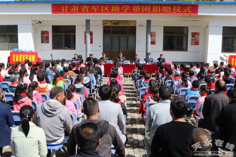 5月15日,甘肅省軍區(qū)助學(xué)幫困物資捐贈(zèng)儀式在清水縣山門(mén)鎮(zhèn)旺興中學(xué)舉行,為旺興中學(xué)和學(xué)區(qū)捐贈(zèng)價(jià)值6萬(wàn)余元的學(xué)習(xí)用品和生活物資。省軍區(qū)司令員王文清、省委政策研究室巡視員王永和、天水軍分區(qū)司令員劉甫清、天水軍分區(qū)政委石明,清水縣委副書(shū)記、縣長(zhǎng)馬越垠,縣委常委、副縣長(zhǎng)秦永斌出席捐贈(zèng)儀式。