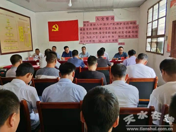 7月1日,清水縣領(lǐng)導(dǎo)李致明、宋賢雄、李應(yīng)祥深入秦亭鎮(zhèn)召開駐村幫扶工作拉練座談會(huì)。并與秦亭鎮(zhèn)第一書記、新增派駐村幫扶隊(duì)員等重溫入黨誓詞,齊唱《沒有共產(chǎn)黨就沒有新中國(guó)》,進(jìn)一步增強(qiáng)黨性意識(shí),堅(jiān)定理想信念,永葆共產(chǎn)黨員的先進(jìn)性和純潔性。