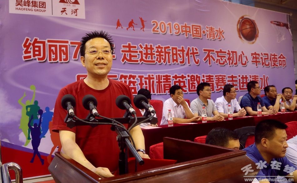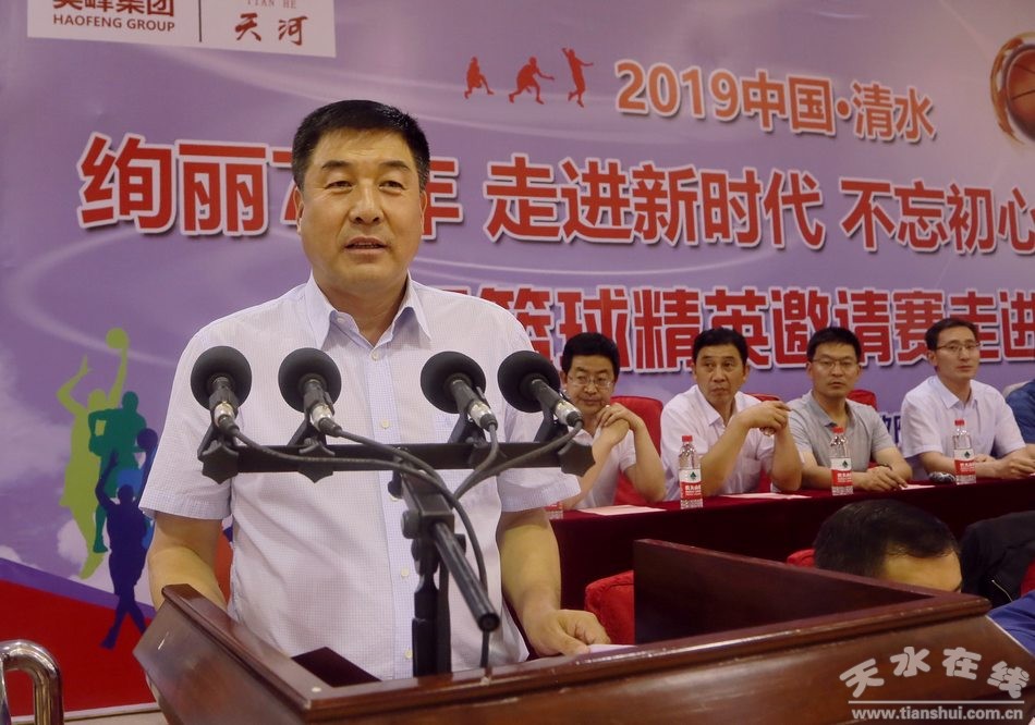 (天水市人大常委會副主任、清水縣縣委書記劉天波宣布“國際籃球精英邀請賽走進(jìn)清水縣”開賽)