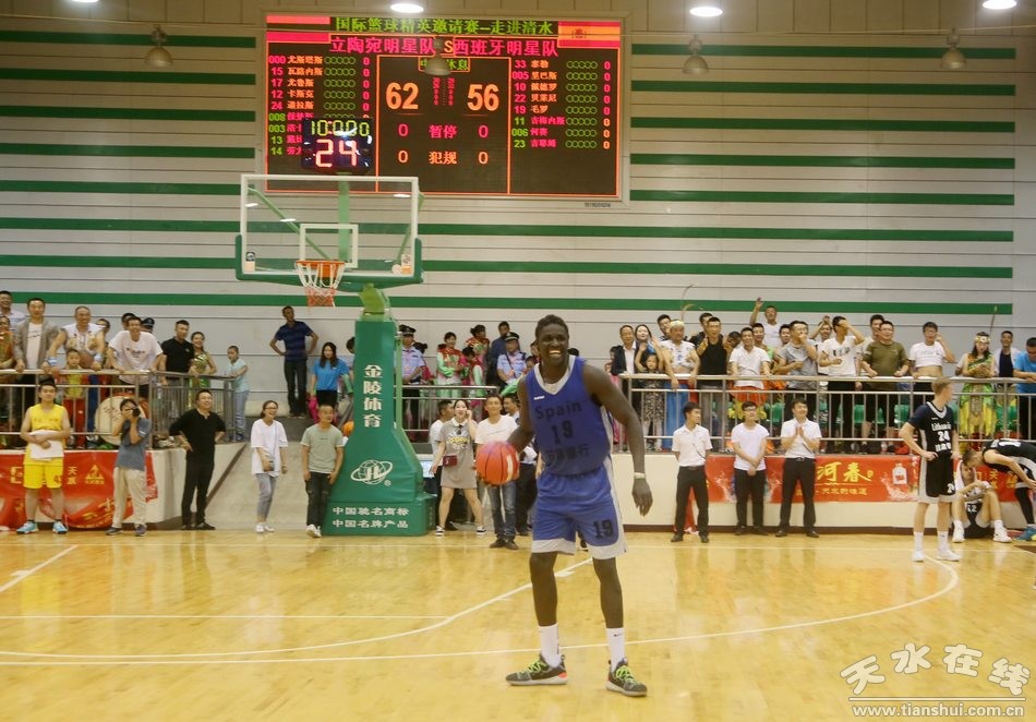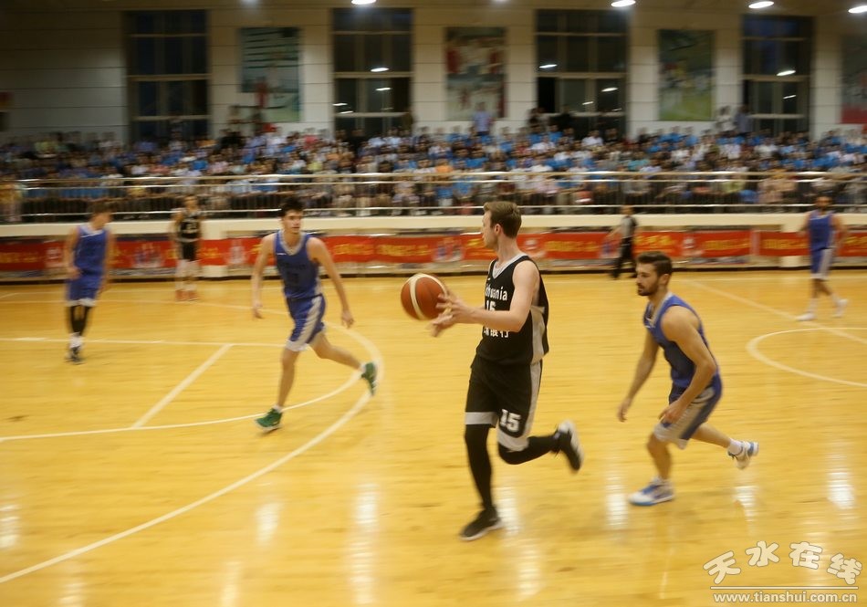 7月3日19時,國際籃球精英邀請賽在清水縣職工培訓(xùn)中心開賽。立陶宛國家聯(lián)盟明星隊對陣西班牙明星隊。