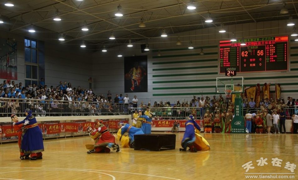 劉天波、周偉東、丁旺喜等縣四大組織在家領(lǐng)導(dǎo)及全縣籃球愛好者觀看了比賽。比賽期間,清水縣軒轅鼓舞和木人摔跤助陣球賽。