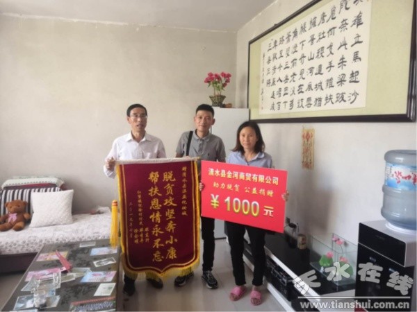 清水縣澳亞化妝城、清水縣京都服裝商貿(mào)城、清水縣均天下服裝批發(fā)城、清水縣金河商貿(mào)有限公司參加了活動(dòng),籌集公益資金10000元。對(duì)清水縣市場(chǎng)建設(shè)中心幫扶的紅堡鎮(zhèn)新坪村和倪徐村8戶建檔立卡戶和困難戶進(jìn)行了愛(ài)心捐助。緩解了貧困戶在危房和低標(biāo)準(zhǔn)房改造,看病就醫(yī),安全用水等方面的資金困難,并通過(guò)企業(yè)主的創(chuàng)業(yè)歷程,激勵(lì)了貧困戶勤勞致富的內(nèi)生動(dòng)力。