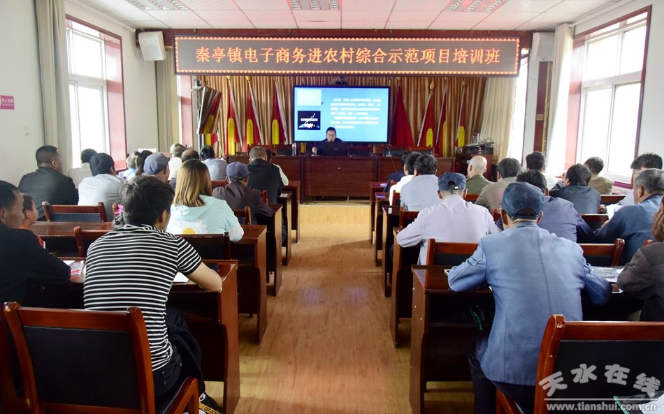 8月14日,天水在線在清水縣秦亭鎮(zhèn)舉辦電子商務(wù)進農(nóng)村綜合示范項目培訓(xùn)班,全鎮(zhèn)各村村干部、電商從業(yè)人員、返鄉(xiāng)青年及致富帶頭人參加了此次培訓(xùn)。