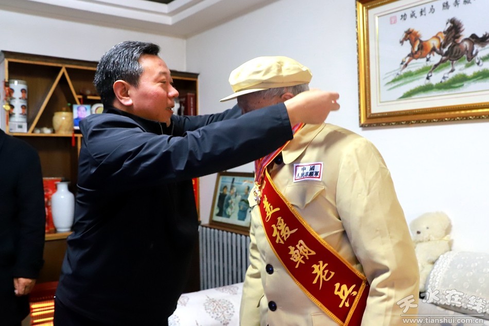 波瀾壯闊的抗美援朝戰(zhàn)爭中,英雄的中國人民志愿軍鍛造了偉大抗美援朝精神。不怕犧牲、英勇戰(zhàn)斗的光榮事跡和愛國情懷,永遠值得后人學習和敬仰,每一個中國人都應(yīng)深刻銘記抗美援朝戰(zhàn)爭的艱辛歷程和偉大勝利,弘揚偉大抗美援朝精神。10月27日上午,清水縣委副書記、縣長馬越垠專程走訪慰問部分抗美援朝志愿軍老戰(zhàn)士,將“中國人民志愿軍抗美援朝出國作戰(zhàn)70周年”紀念章送到他們手中,并向全縣所有健在的志愿軍老戰(zhàn)士、老同志致以崇高敬意和親切問候。