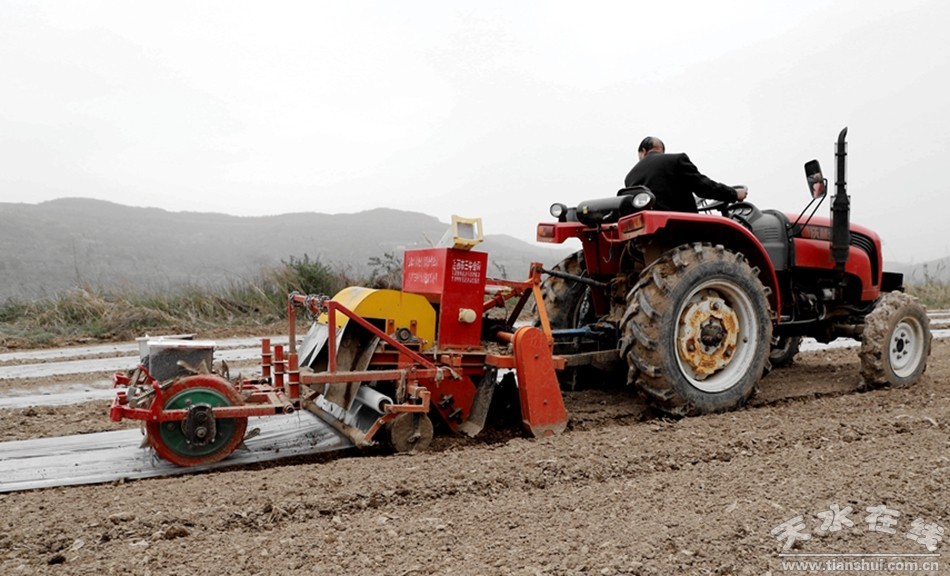 四月,正是麥苗拔節(jié)生長的時(shí)節(jié)。春風(fēng)浮動(dòng),成片的麥田泛著綠油油的波浪,舒展著春天的希望。而在綠色的田野,農(nóng)民們繁忙耕種場景則讓大地?zé)òl(fā)勃勃生機(jī)。連日來,走進(jìn)遠(yuǎn)門鎮(zhèn)的田間地頭,不時(shí)可見旋耕機(jī)在撂荒地里來回作業(yè),覆膜機(jī)穿梭在已經(jīng)旋好的土地上,遠(yuǎn)遠(yuǎn)望去,一塊塊裸露的耕地如同穿上了嶄新的“外衣”。