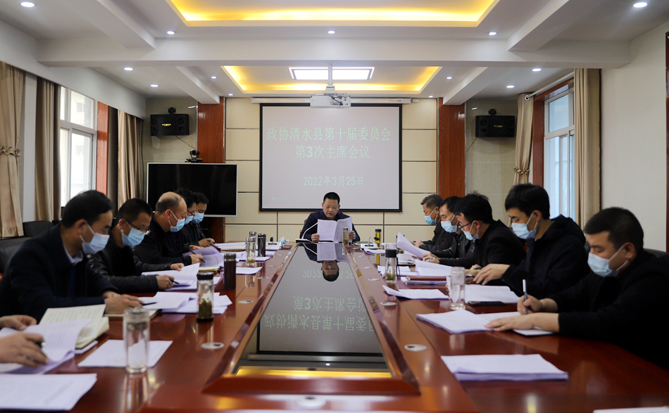 3月25日,清水縣政協(xié)召開第十屆委員會第3次主席會議,縣政協(xié)主席丁旺喜主持會議。