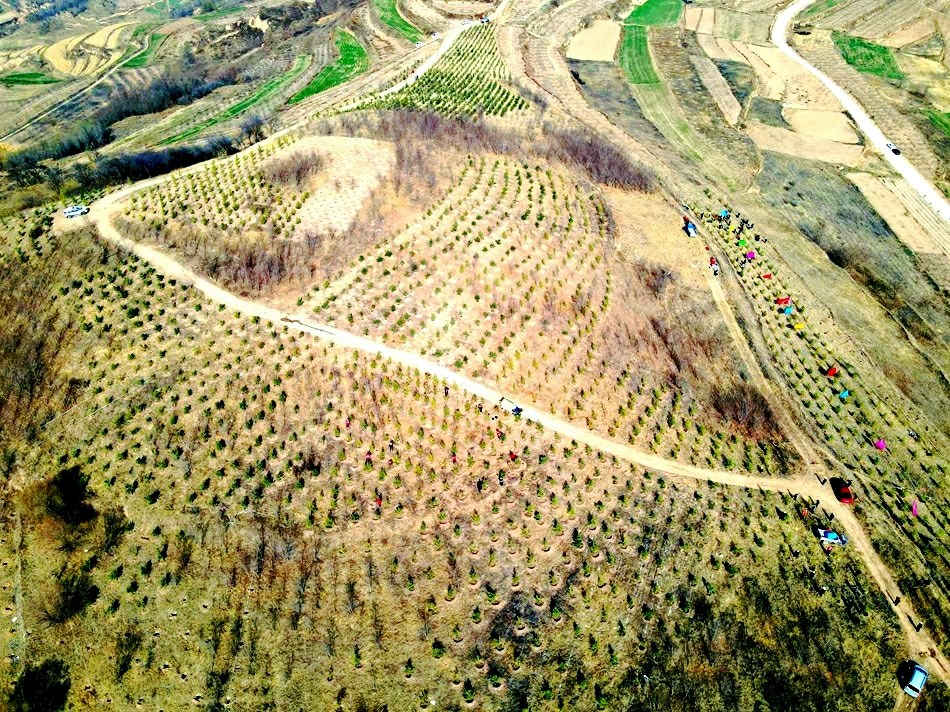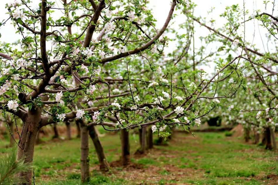 3月正值蘋果樹發(fā)芽開花的時節(jié),在郭川鎮(zhèn)廟山梁的蘋果種植園內(nèi),漫山遍野的蘋果樹長勢喜人,嫩綠的新芽在枝頭抽綠,部分開花的樹枝散發(fā)著陣陣撲鼻的香氣,蘋果樹綿延田間,不僅裝扮了村莊,更點亮了群眾增收的希望。