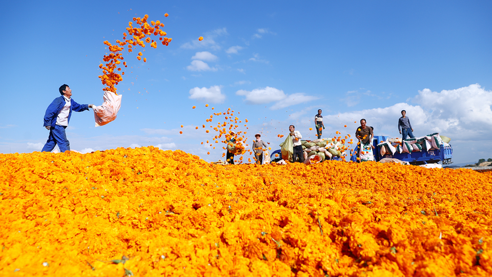“我每天能采摘150至200公斤,采摘比較容易,用點(diǎn)心都可以干好,種植萬(wàn)壽菊不光讓我們的鄉(xiāng)村變美麗了,也多了一份無(wú)風(fēng)險(xiǎn)的增收產(chǎn)業(yè)!狈N植大戶魯雙錄扛著新采摘的一袋萬(wàn)壽菊邊走邊說(shuō)。時(shí)下,清水縣萬(wàn)壽菊已到第三茬采摘期,全縣各鄉(xiāng)鎮(zhèn)正在全力以赴組織群眾采收,日均采摘量可達(dá)2500噸。