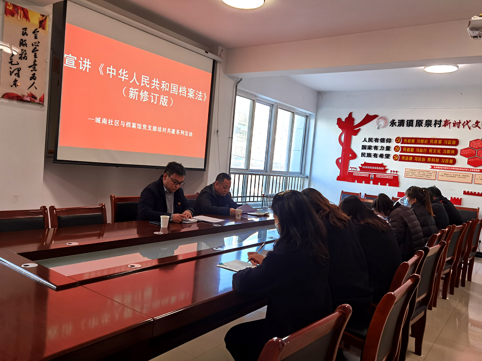 為宣傳新修訂的《檔案法》,讓更多市民走近檔案、認(rèn)識檔案、了解檔案,近日,清水縣檔案館和城南社區(qū)開展了“宣講《中華人民共和國檔案法》(新修訂版)”結(jié)對共建活動。