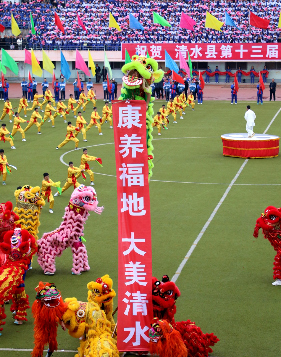 市委教育工委書記、市教育局黨組書記楊瑞峰以及清水縣四大組織領導李菊霞、丁旺喜、蔡俊杰等出席開幕式。來自全縣各中小學的運動健兒意氣風發(fā),斗志昂揚,展示著飛揚的青春風采。在雄壯的運動員進行曲中,會徽、宣傳牌、彩旗隊、鼓號隊、裁判員、運動員方陣精神抖擻,邁著堅定的步伐依次入場。