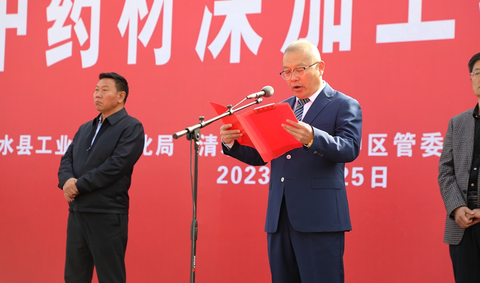 李菊霞代表縣四大組織對項目的開工表示熱烈的祝賀,向多年來關(guān)心支持清水經(jīng)濟社會發(fā)展的各界人士表示衷心的感謝。她說,這次開工的君石中藥材深加工項目,將有效填補清水縣在中藥材提取、制劑生產(chǎn)方面的空白,對于穩(wěn)定道地中藥材種植面積,提升中藥材產(chǎn)業(yè)集聚度和綜合競爭力具有十分重要的現(xiàn)實意義。相關(guān)部門要始終秉承“尊商親商、富商安商”的理念,增強服務(wù)意識,加強指導協(xié)調(diào),各盡其責、密切協(xié)作,全力解決項目建設(shè)中存在的困難問題,竭誠做好最優(yōu)質(zhì)的服務(wù)保障,為項目順利建設(shè)創(chuàng)造一流的環(huán)境。希望君石公司充分發(fā)揮人才、技術(shù)、資金優(yōu)勢,高標準、高質(zhì)量推進項目建設(shè),爭取按期建成發(fā)揮效益;監(jiān)理單位要嚴格按照有關(guān)技術(shù)標準,強化監(jiān)管,全力保障工程質(zhì)量;施工單位要切實加強自身管理,優(yōu)化施工組織,信守履約承諾,確保把項目建成特色鮮明、功能完善的精品工程、樣板工程。